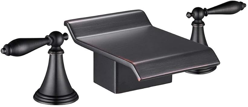 Waterfall Oil Rubbed Bronze Sink Faucet High Arc Faucet Bathtub Faucet Waterfall Spout Tub Filler Faucet Two Handles Three Holes Amazon Com