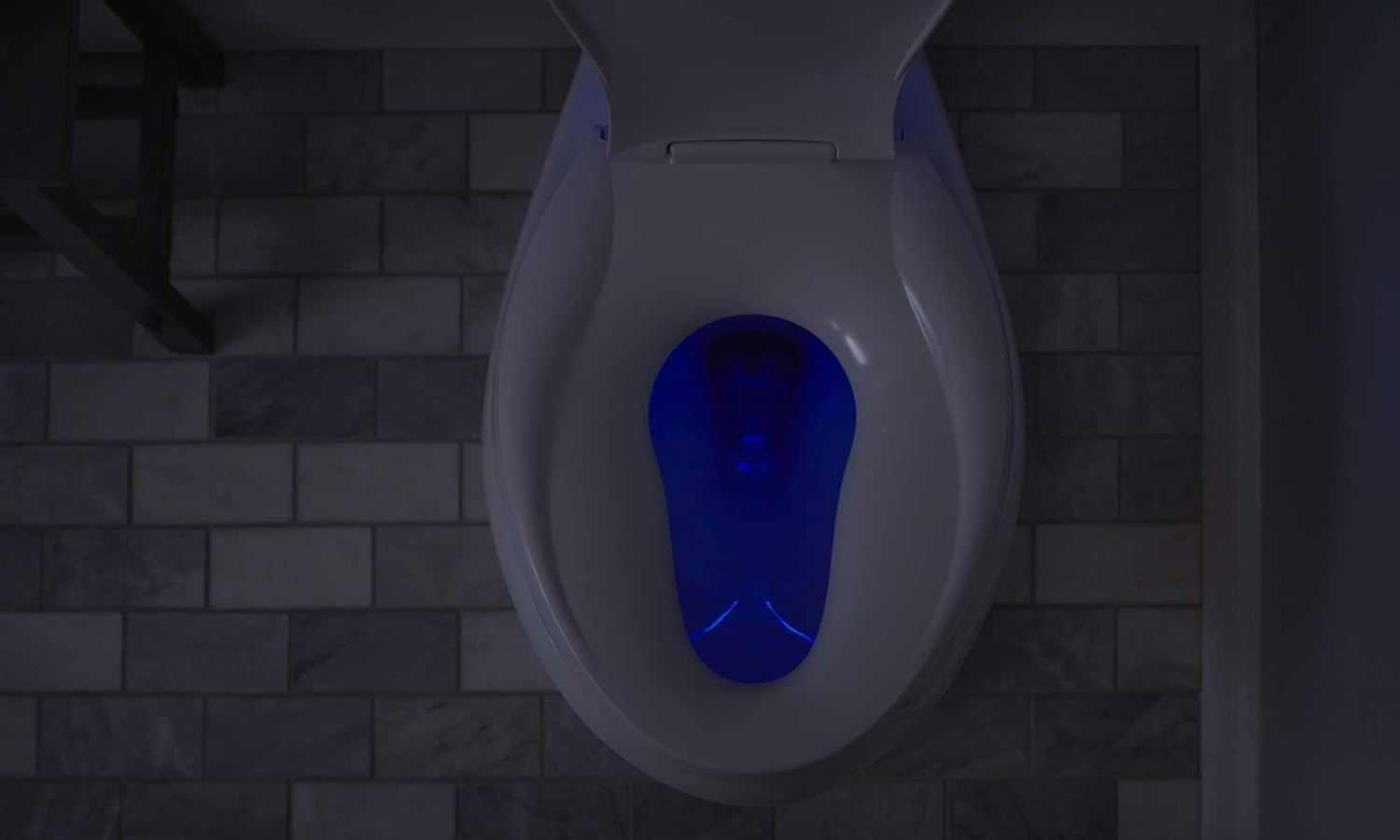 Nightlight - Lighted toilet seats by Kohler Easy on the eyes The dual LED lighting on Nightlight is designed to provide optimal light intensity for guidance without disturbing your nighttime vision. Kohler reveal toilet seat review. Nightlight technology eliminates the need to turn on blinding lights when taking a bathroom break in the dead of the night.