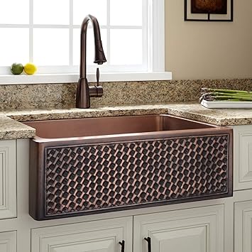 Signature Hardware 215479 Weave Design 30 Single Basin Copper Farmhouse Sink Amazon In Home Improvement