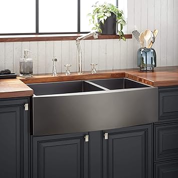 With its 7030 double-bowl layout there is plenty of room to accommodate large pans and serving ware. 33 Kiana Curved Apron Copper Farmhouse Sink Signature Hardware. 30 Reinhard Fireclay Farmhouse Sink - Dark Gray Signature Hardware.