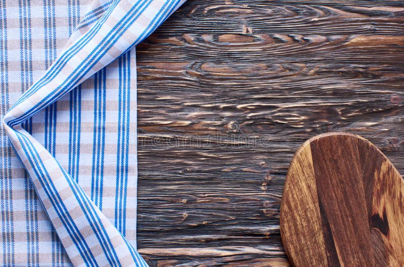 Old Dark Wooden Background Wooden Table With Blue Kitchen Towels Stock Image Image Of Board Antique 149631701