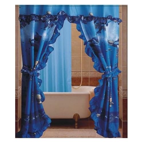 And Shower Curtain Set Double Swag 5 Piece Liner Tie Back Bathroom Supplies Accessories Shower Curtains